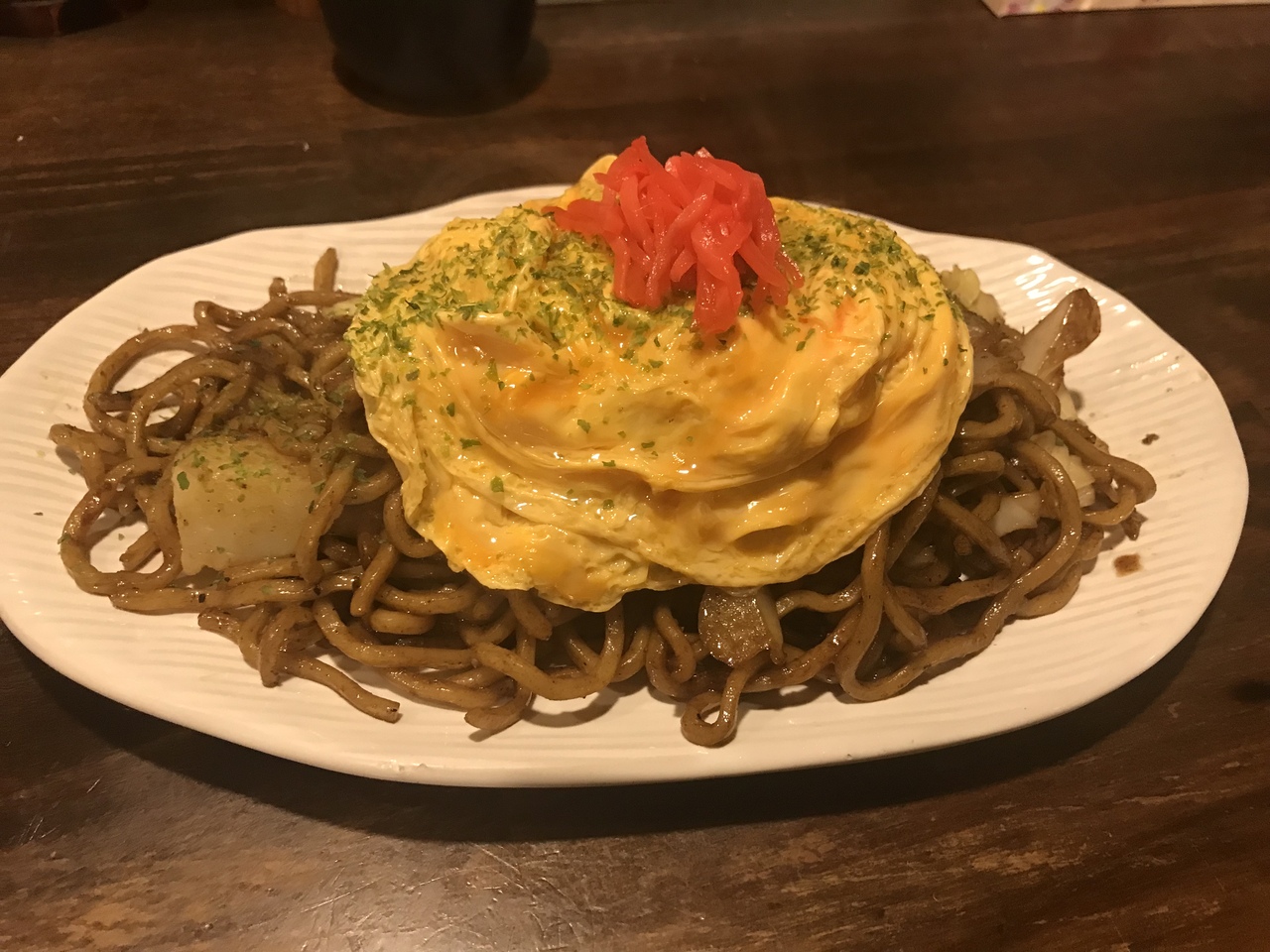 焼きそばは野菜、肉、イカ、ポテト、玉子、もつのトッピングがあり、山内屋スペシャル(家でなく屋で正当)を注文するとほぼ全てのトッピングがされるのでそちらを注文。焼きそばはオムレツのような卵焼きがトッピングされている。ポテトが入っているのは北関東の焼そばの特徴かも。ソースは少し濃いめ。でもくどくない。北関東でいただく焼きそばはこんな感じなのかな?と思った次第。