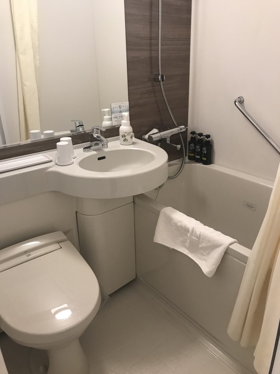 シングル(一応ダブル)に宿泊。部屋は狭すぎずちょうど良い広さ。机が少々小さいが、仕事をするには問題なし。バスルームは普通のユニットバスだが、フロントに色々な入浴剤が用意されているので、それを使えばリラックスできるかも。なお、歯ブラシ、ティーバックを含めアメニティはすべてフロントで好きなものを持っていく必要がある。