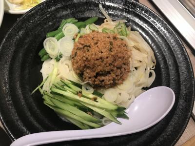 それと炸醬麵(じゃじゃ麺)はこの店限定。1日25食限定なので、早めの入店なら是非というメニューらしい。きしめんのような平打ち麺の上にそぼろ(肉みそでは無い)、きゅうり、もやし、ねぎ、インゲンがトッピングされている。味がシンプル(甘くもなく、辛くもない)なので途中でテーブルの唐辛子油、お酢を足すと最後まで飽きない。ボリュームもちょうど良いので、また食べたい味。