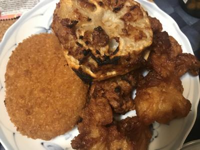夕食用に焼き鳥、揚げ物を購入しましたが、焼き鳥は肉が柔らかく、甘めのたれとよく合う。揚げ物はビールによく合う。