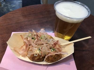 夕方なので、ビール解禁!と言うことでたこ焼き4つと生ビールなセットを注文。たこ焼きは釜炊き塩を選択。たこ焼は中はとろり、周りは揚げていないのでさっぱり。たこも大きめでたこ焼き自体に出汁の味がある。ソースで誤魔化していないのが良い。。- 旅行時期