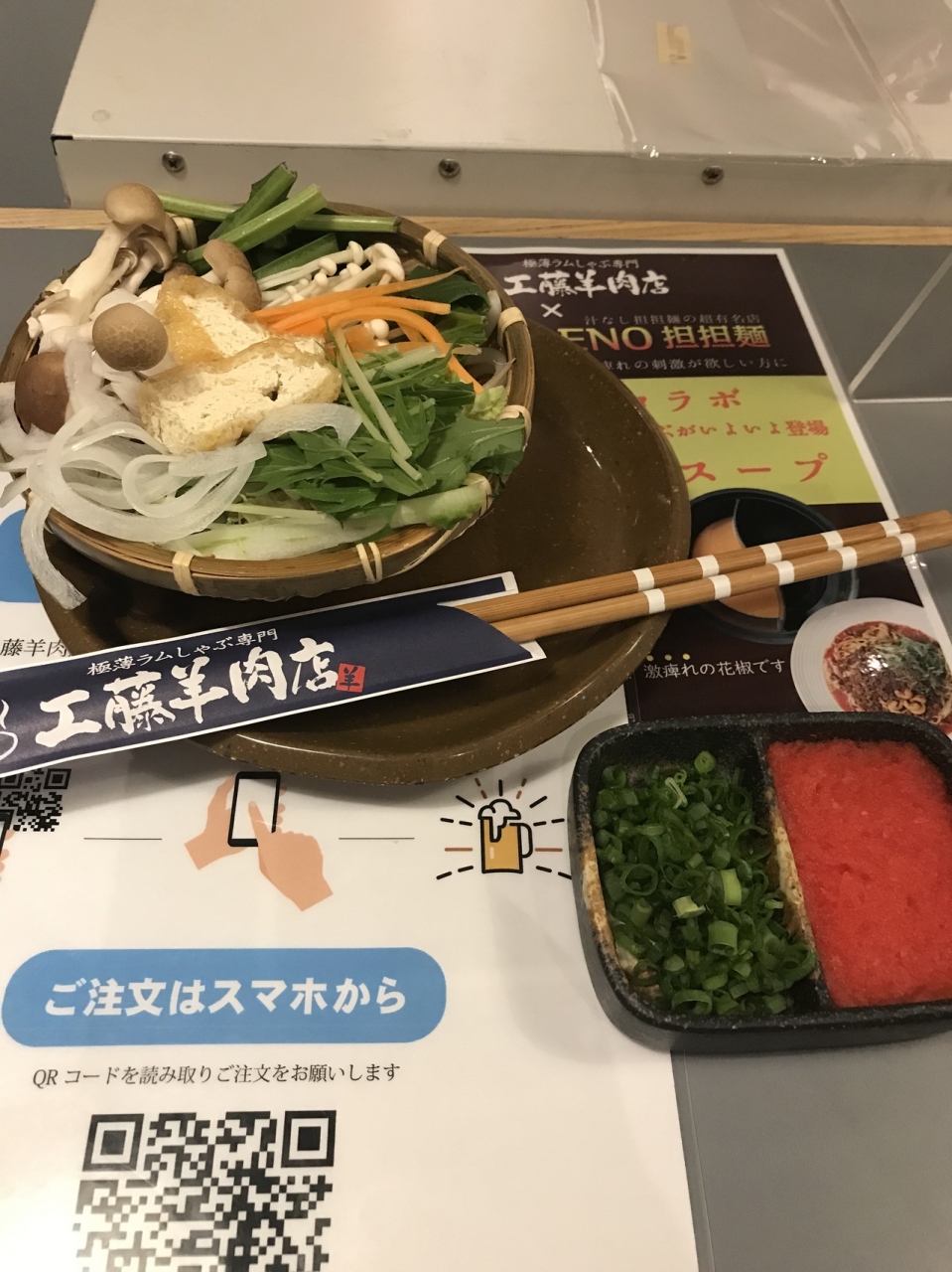 最初の注文はスタッフに伝えるが、新型コロナ対策を兼ね、その後の注文はQRコードを読み取り自身のスマホから注文(もちろん通常の注文も可能)。追加注文も気兼ねないのだが、注文から到着までが少し時間がかかる気がした。