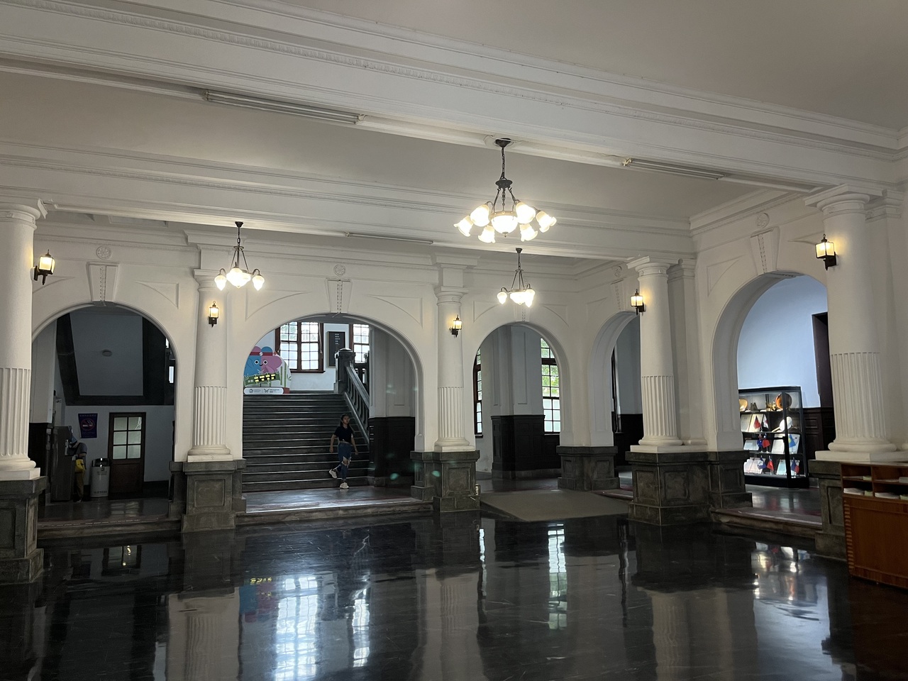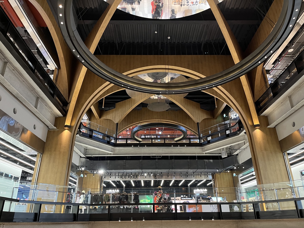 館内は地下1階~地上4階までをアーチ型吹き抜けが貫き、室内にいても自然が感じられるデザイン、ただし照明が少し暗め。