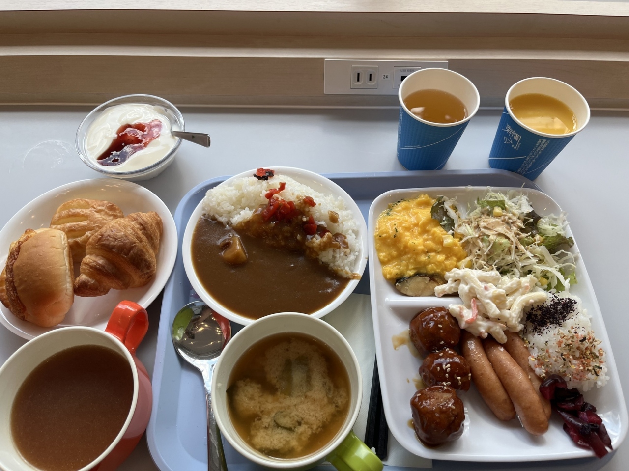 朝食は学校の給食を思わせるメニュー。大阪ローカルメニューとしてきつねうどんがあった。なお、朝食は紙の弁当箱に入れて部屋に持ち帰って食べることも可能。