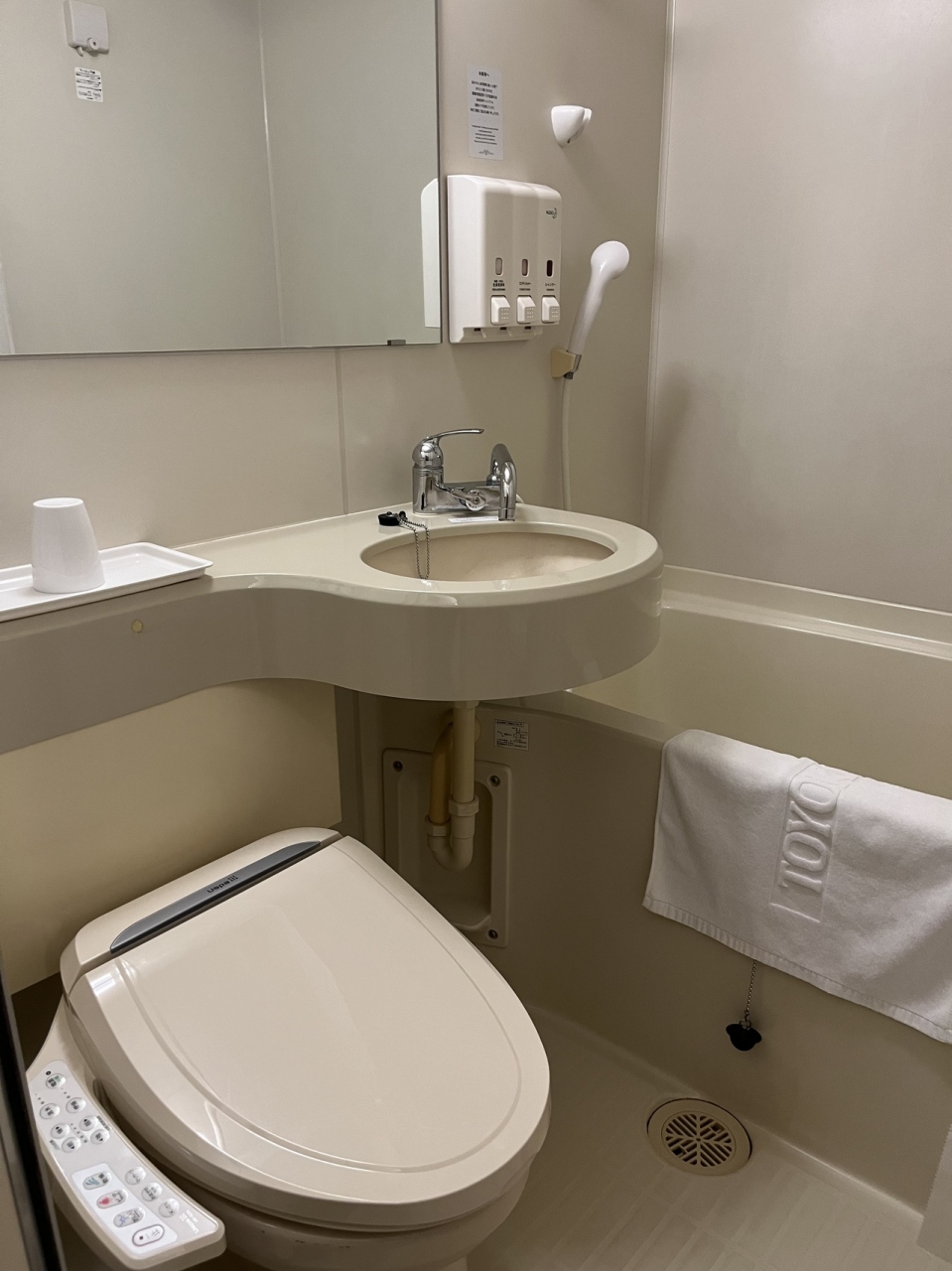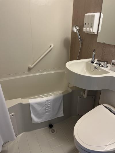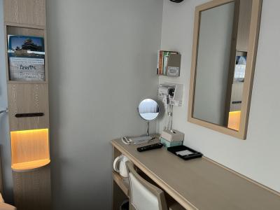 部屋は他の東横INNと同じだが、照明、バスルームなどは最新設備。コンセントの数も多い。なお、部屋からは近鉄、JRが見えるのでトレインビューも楽しい。