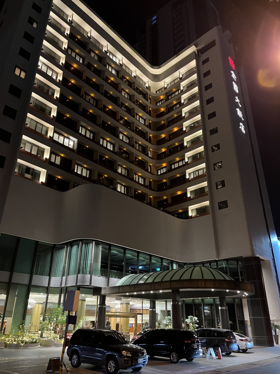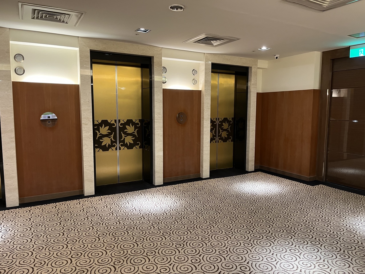 1980年開業、昔は台中で一番豪華なホテルだそうで玄関やロビーのシャングリアなどレトロな感じ+風格がある。エレベーターホールも広め。