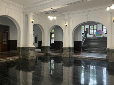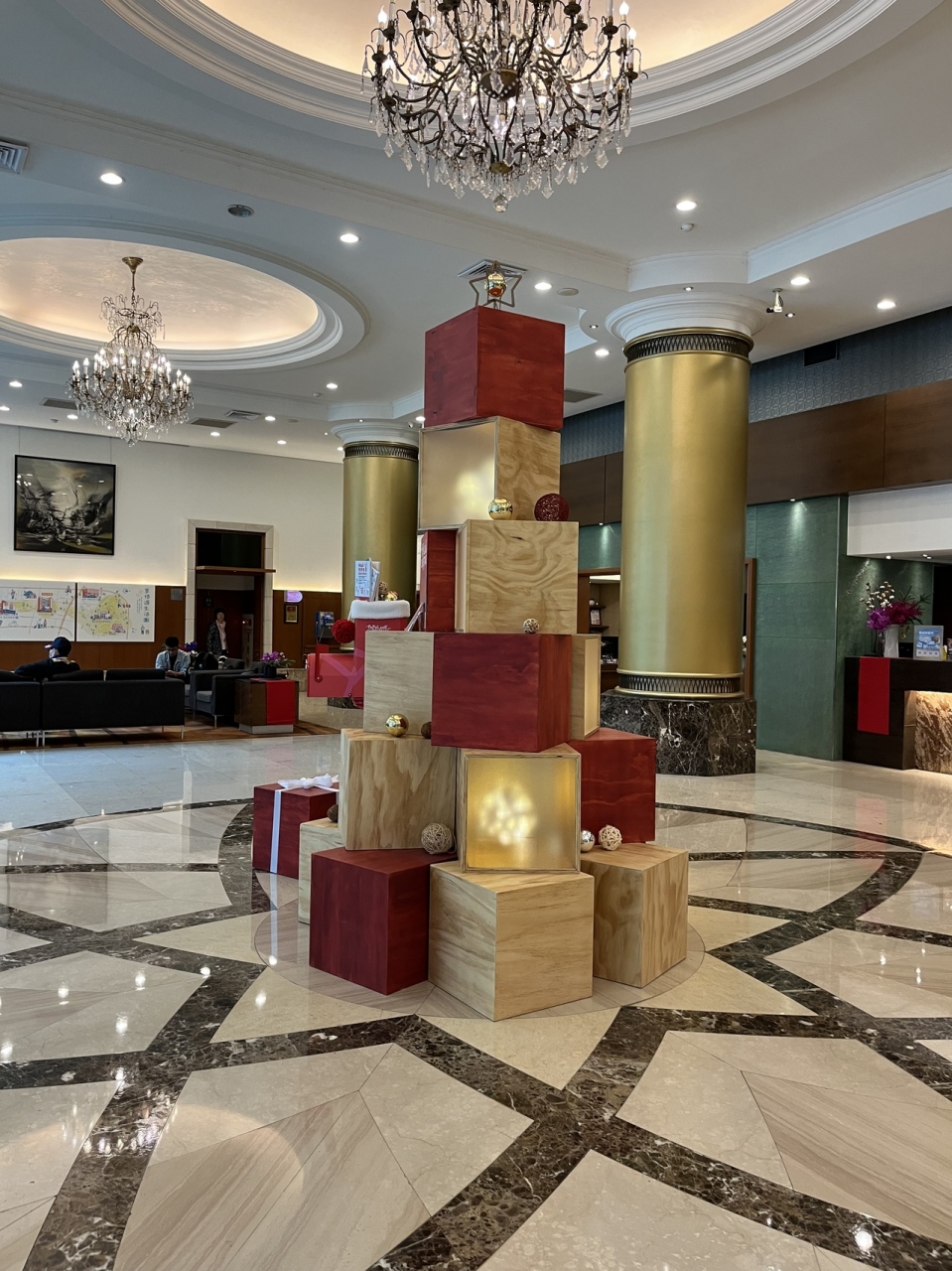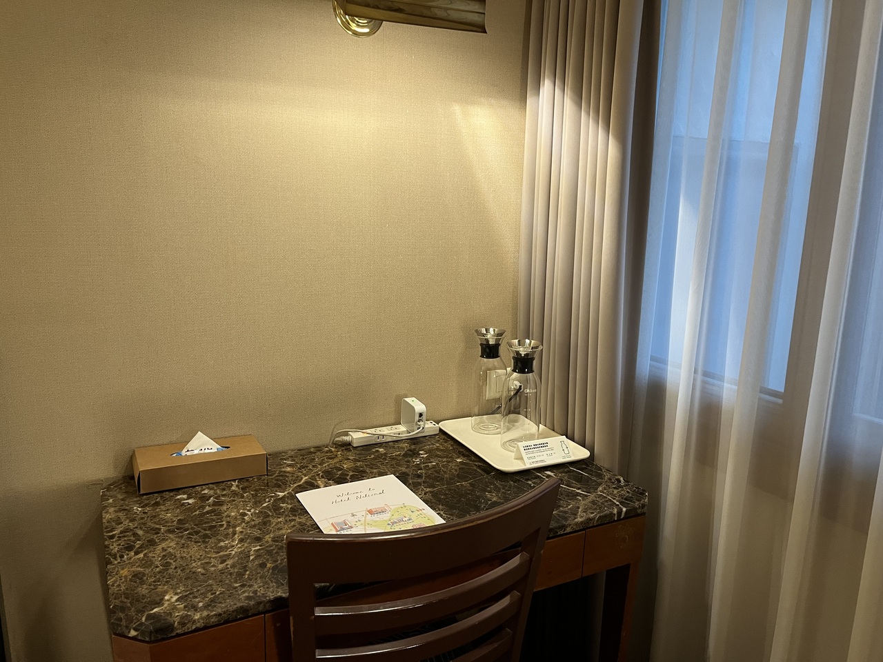 ホテルの外観は通り沿いの部分は綺麗になっている。フロントは比較的広め、2階には大きい会議室や朝食会場がある(企業の研修が行われていた)。今の立ち位置は不明だが、昔はシティホテルだったようだ。