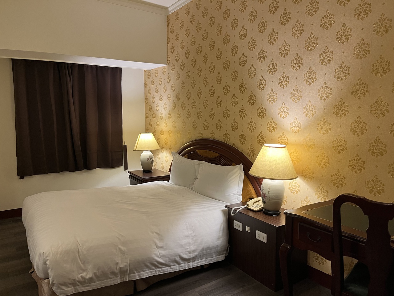 スタッフはTシャツ姿、制服は無いようだ、一方で客室は広いが古め。もちろん清潔ではあるが、トイレットペーパーを馬桶(=便器)に流せないのは辛いところ(台湾は結構多い)。トイレとお風呂は同じ部屋だがビジネスホテルのようなユニットバスではないので、臭いがお風呂には届かないのでご安心を。また、セキュリティボックスも無い。その一方でテレビは大型、コンセントも不足なし。朝食付きでお値打ち価格だったので、価格重視なのであればお勧め。