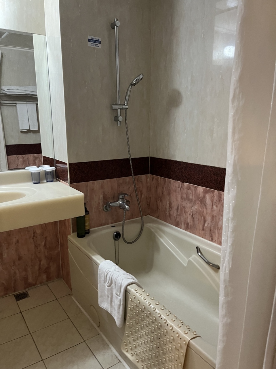 ただし、価格には訳があって、部屋のタオルはバスタオル1枚のみ(ハンドタオル、身体を洗うタオルは無い)、連泊したがタオルとゴミ箱交換以外無し(ベッドメイキングもしてくれない)、足拭きマットもない(2枚あったので先に使ったものを使用すれば何とかなる)、掃除はいい加減(気にならない人は問題ないレベル)。