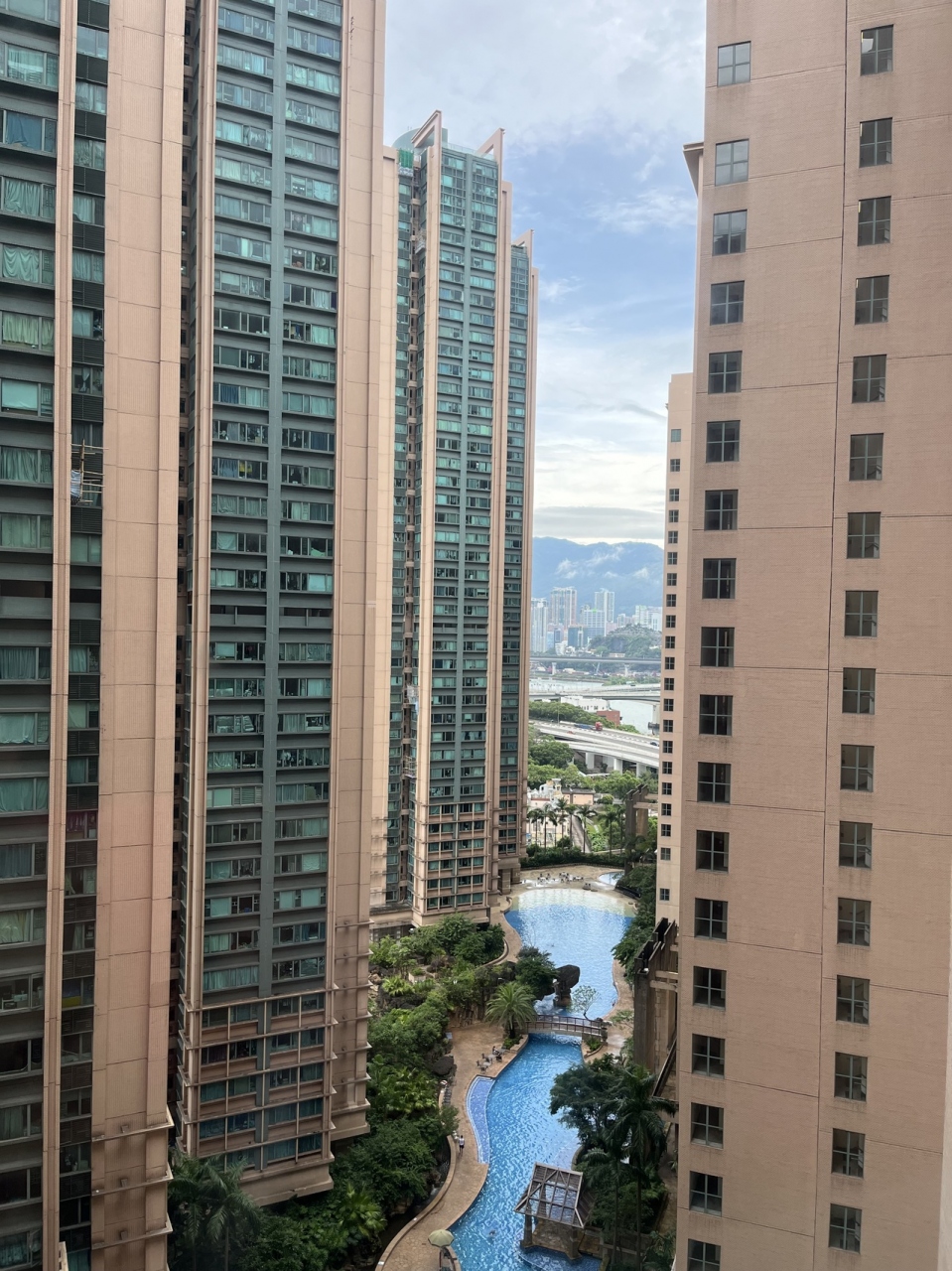 エアポートエクスプレス及びMRT東涌線の青衣駅駅よりミニバスで10分ほど、マンション、ショッピング街、ホテルが一体になったエリアにあります。