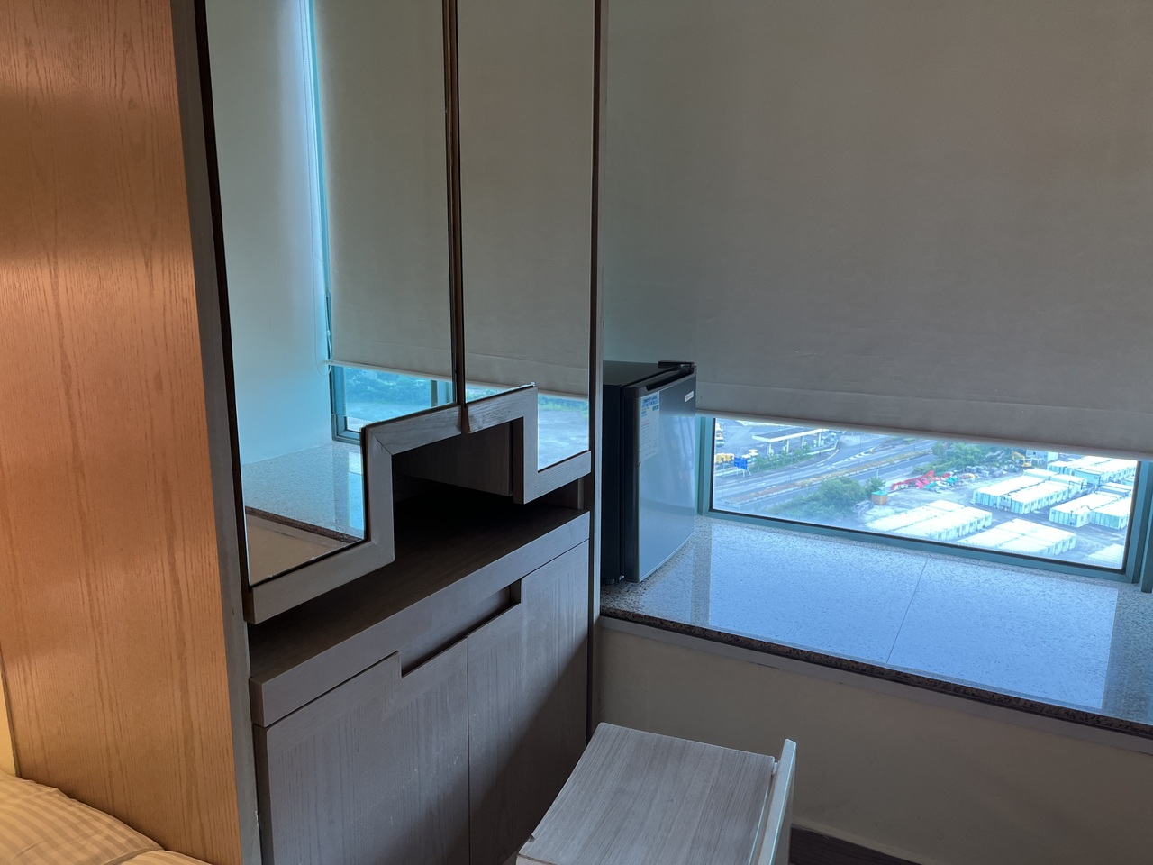 お洒落。しかも2重窓なので騒音が入ることは無くぐっすり眠れた。冷蔵庫は空っぽだがコーラとポカリスエットが入っていた(無料)。
