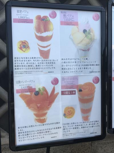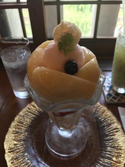 桃パフェが到着。岡山県産白皇(白鳳)を使用しているとの説明あり。桃はまる1個以上使っているようで、アイスになかなか辿り着かない。桃は甘ったるくなくさっぱりしている。上には桃のシャーベットがアイスクリームの下にはヨーグルトで和えた桃のコンポートが。まさに桃づくしのパフェてある。価格はランチ以上だが、満足。次回はシャインマスカットかな。