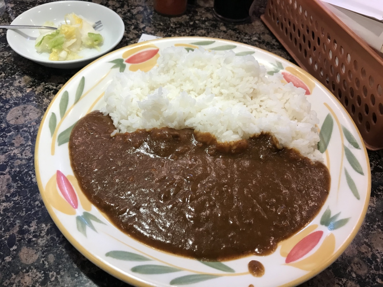 価格もお手頃でトッピングがあるが、今回はトッピングなし(レギュラーカレー)を注文(食券方式)。ルーはシンプルだが、牛肉と淡路島産のたまねぎが溶け込んでいて、これぞ大阪のカレーの味。付け合わせの白菜のピクルスも美味しい(追加料金で増量可能)。
