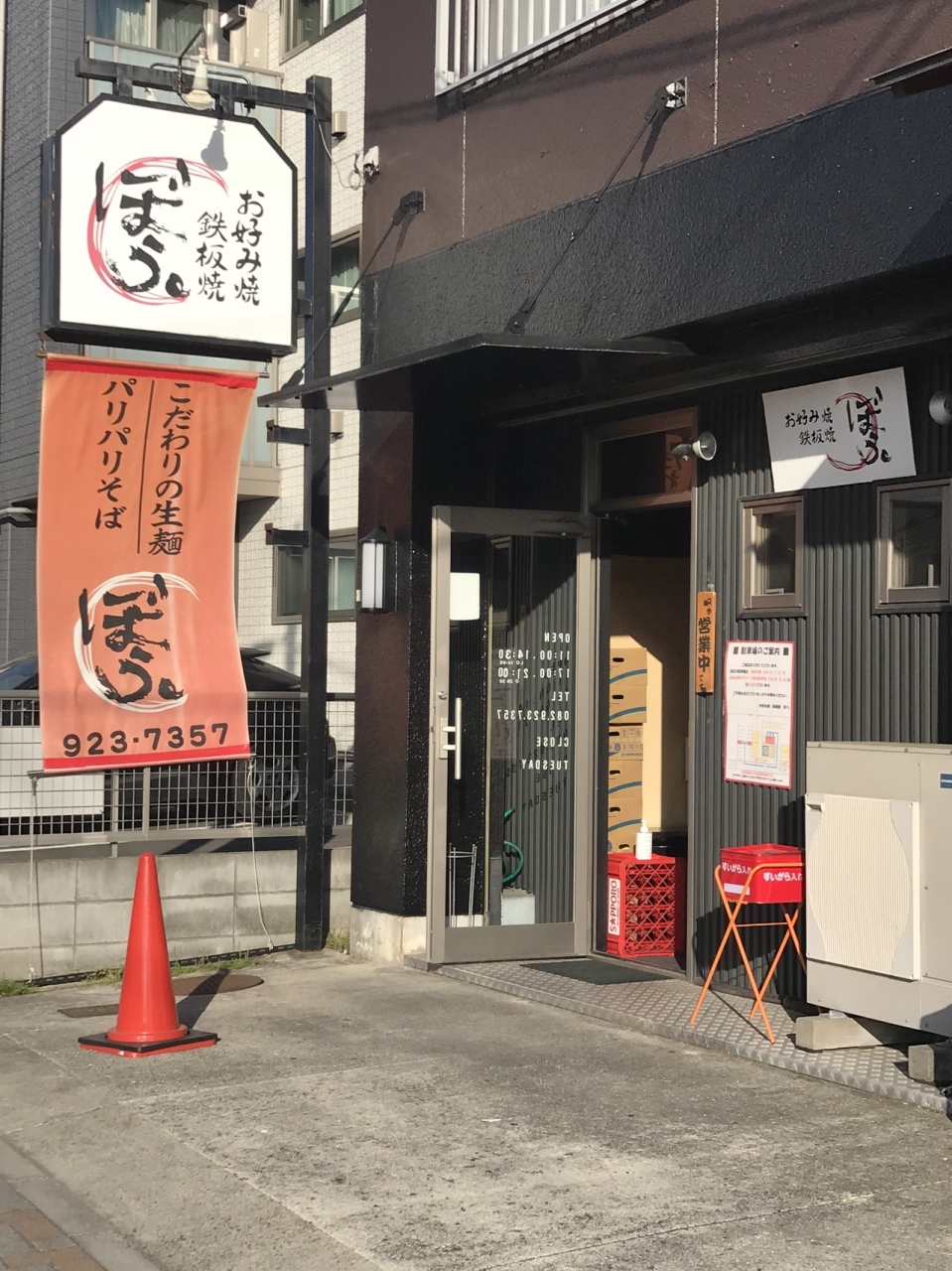 JR、広電五日市駅から5分ほど歩いたところにあるお好み焼き屋さん。土曜日の17時頃に入店したが席はほぼ埋まっている感じ。