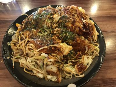 しそ、いか天、豚バラ、チーズ、あぶりねぎマヨが入った府中焼スペシャルを注文。いつものお好み焼と違い、ミンチ肉か入っていて、その脂のおかげで麺はパリパリ。キャベツとの相性も良く美味しい。初府中焼きだったがまた食べたい味。