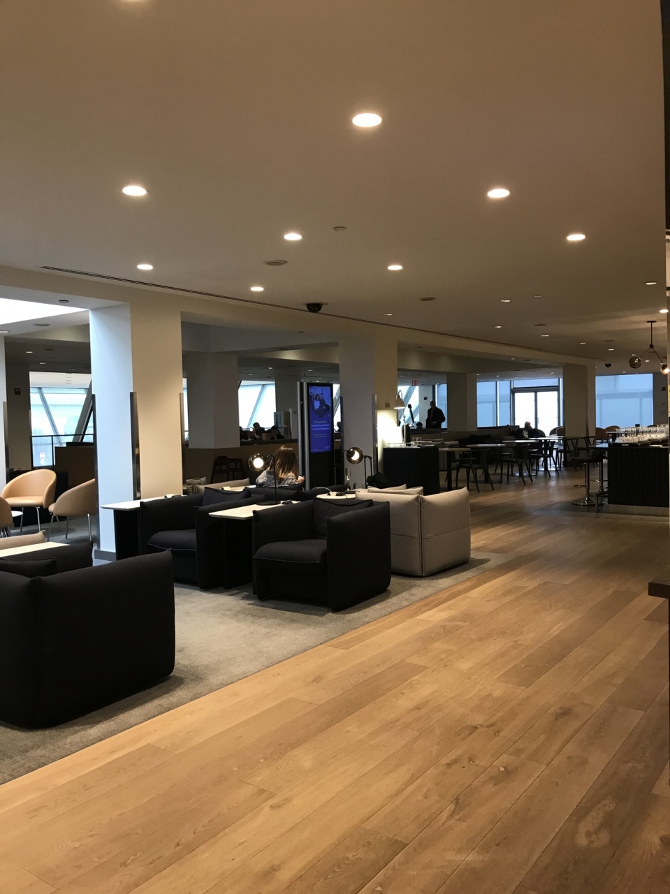 JFK空港ターミナル7にあるブリティッシュエアウェイズのラウンジ。NH羽田・成田行のラウンジはこちらが指定される(ターミナル7のラウンジはブリティッシュ・エアウェイズとアラスカ航空の2社のみ)