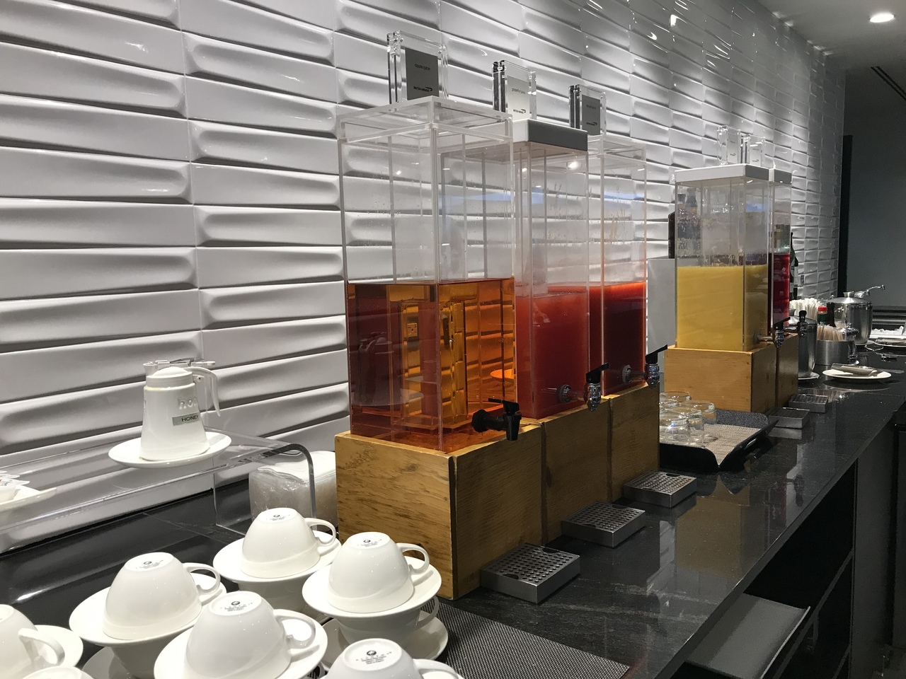 また、中央にバーカウンターがあって、その場でカクテルを作ってくれる。ビール、ウイスキーの種類も多く、ついつい飲んでしまうので、搭乗前に酔っぱらってしまうかも(笑)。