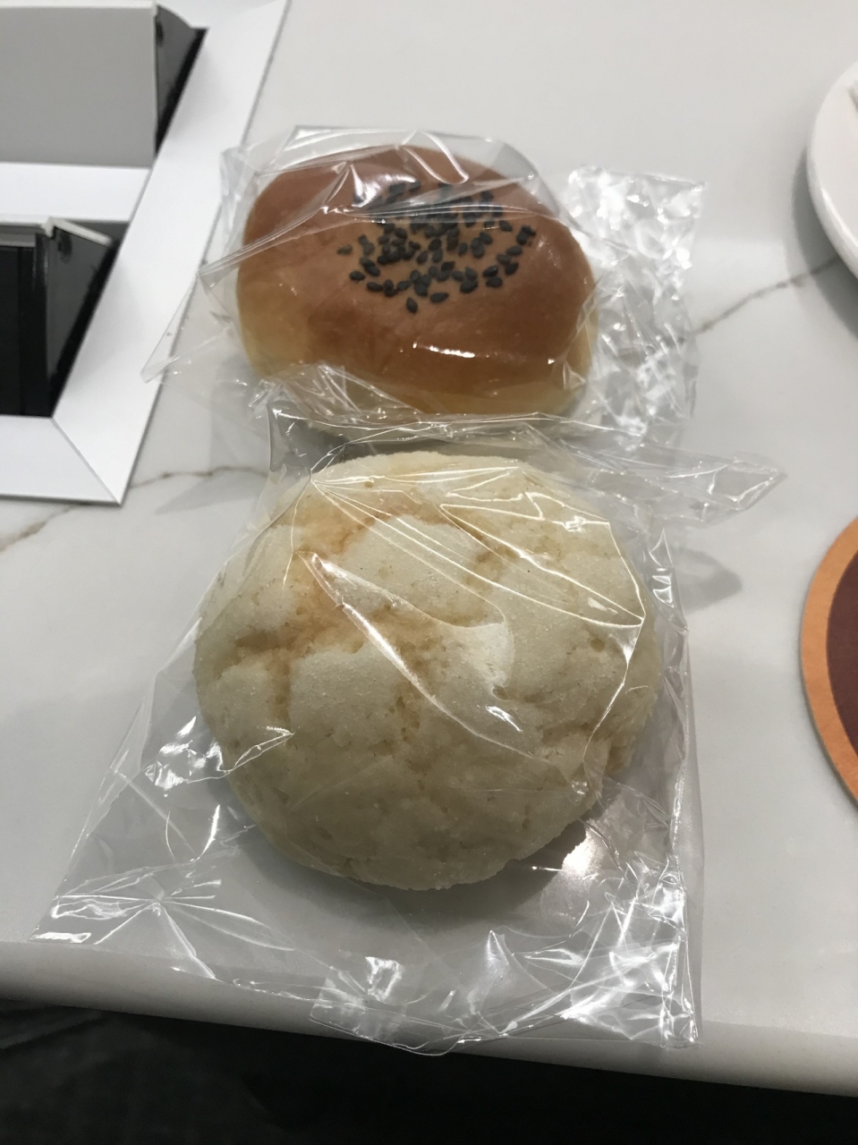 お店の前には白い袋で丁寧に包装されたパン(コロナ禍のため包装しているらしい)を発見!とろけるピーナッツクリームパンというパンで、某テレビ番組(2020年12月末で活動を中止した国民的アイドルが出演)で紹介され、絶賛されたということで早速購入。