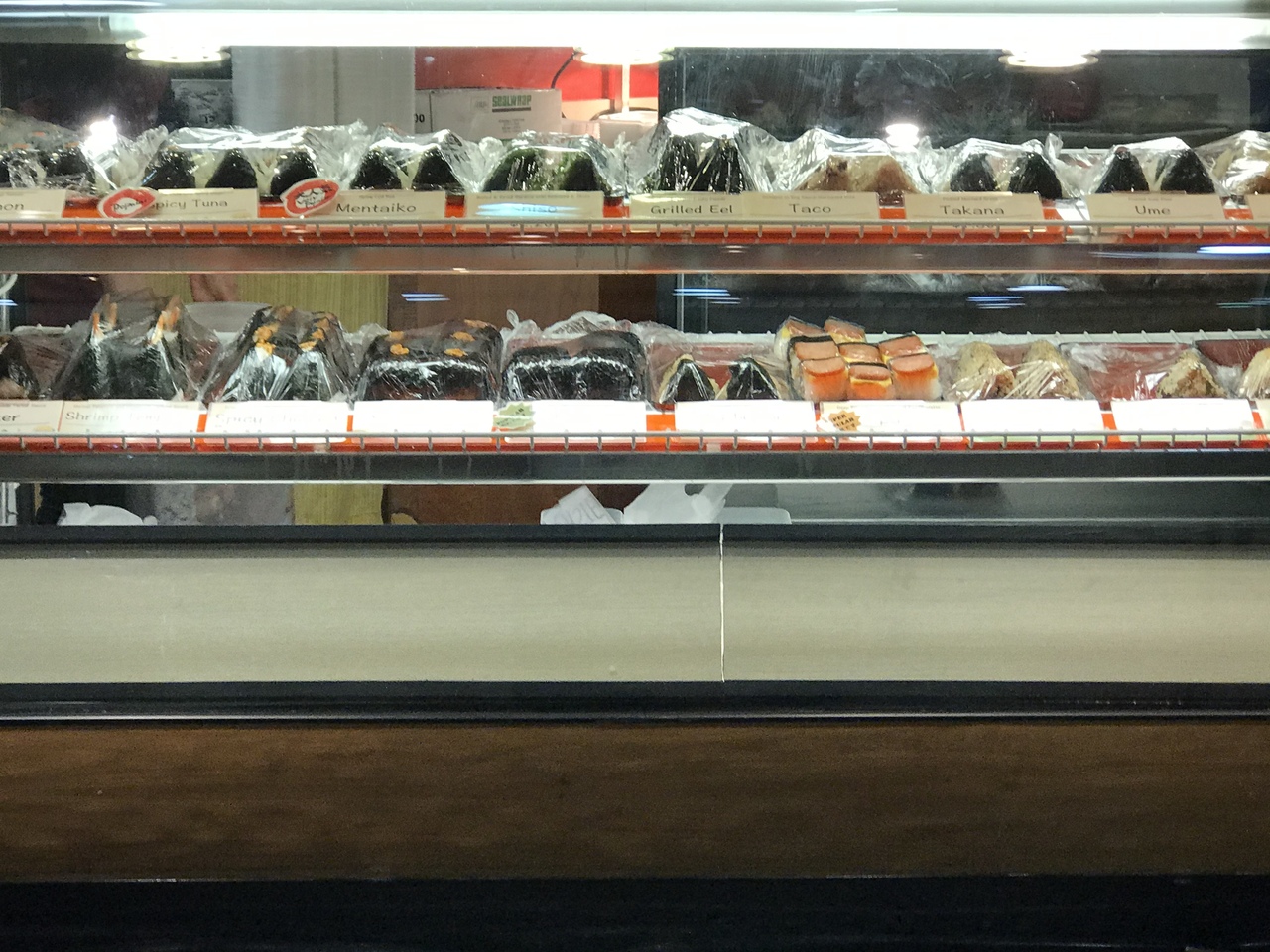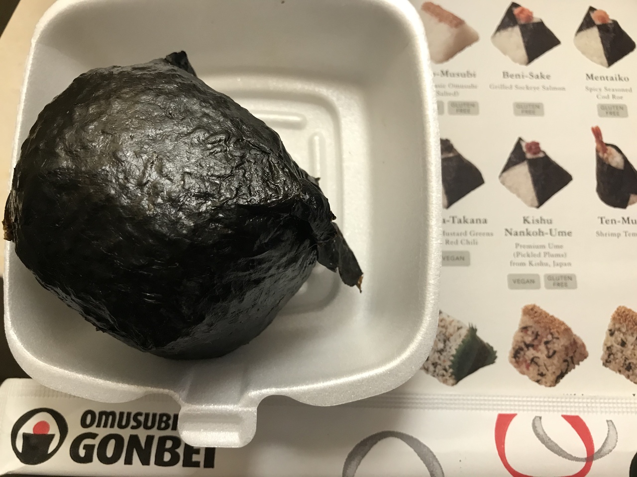 梅、鮭、たらこ等の定番に加えて高菜(Takana)、蛸飯し(Taco)等アメリカではなかなか食べられない具材もあって、日本食が恋しくなった際にお勧め。それと日本の権兵衛と同様に玄米使用(Brownと表記)のおにぎりがあるのも嬉しい。