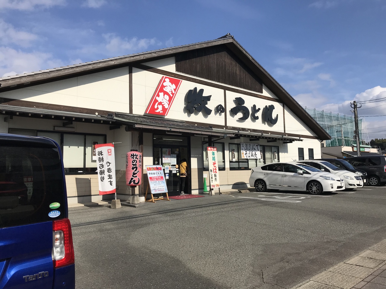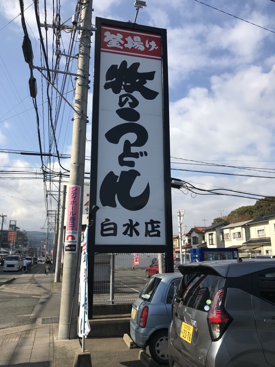 福岡で有名なうどん店。博多南駅から徒歩15分ほど、西鉄バス天神山バス停横。