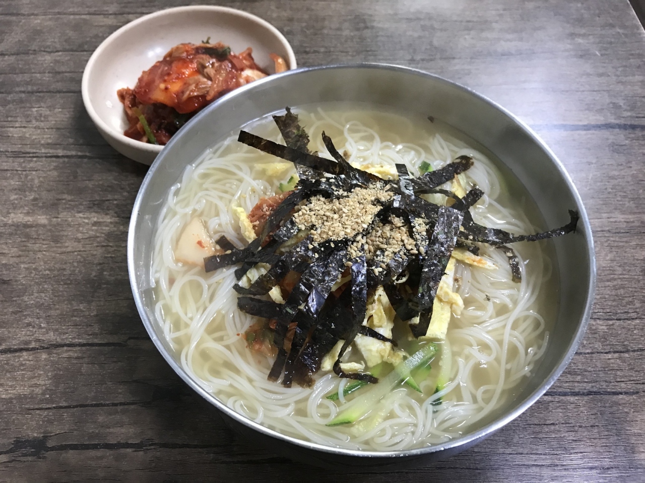 閉店30分前(21:25頃)に入店。オーダーストップ近くだということで、ミルミョン(汁あり)のみオーダー可能と言われたので、そちらを注文。店内に客がおらず、店員は少し不愛想。以前海雲台の支店に行った時、非常に良い感じだったので少し残念。