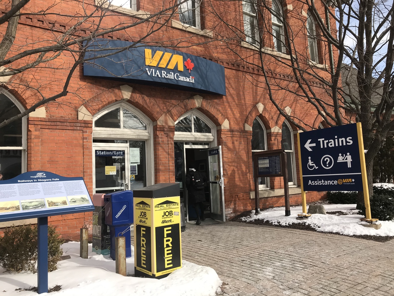 ナイアガラフォールズの最寄り駅。対岸のアメリカ側にも同じ名前の駅がある。