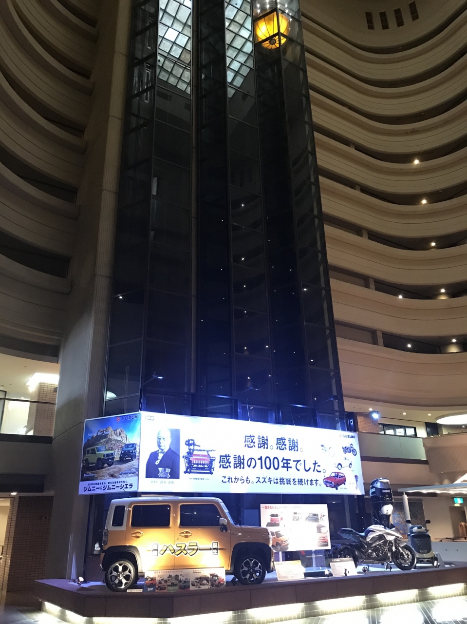浜松市内にある老舗ホテル。中は豪華な吹き抜けがあり、色々なレストラン、ショップがある。