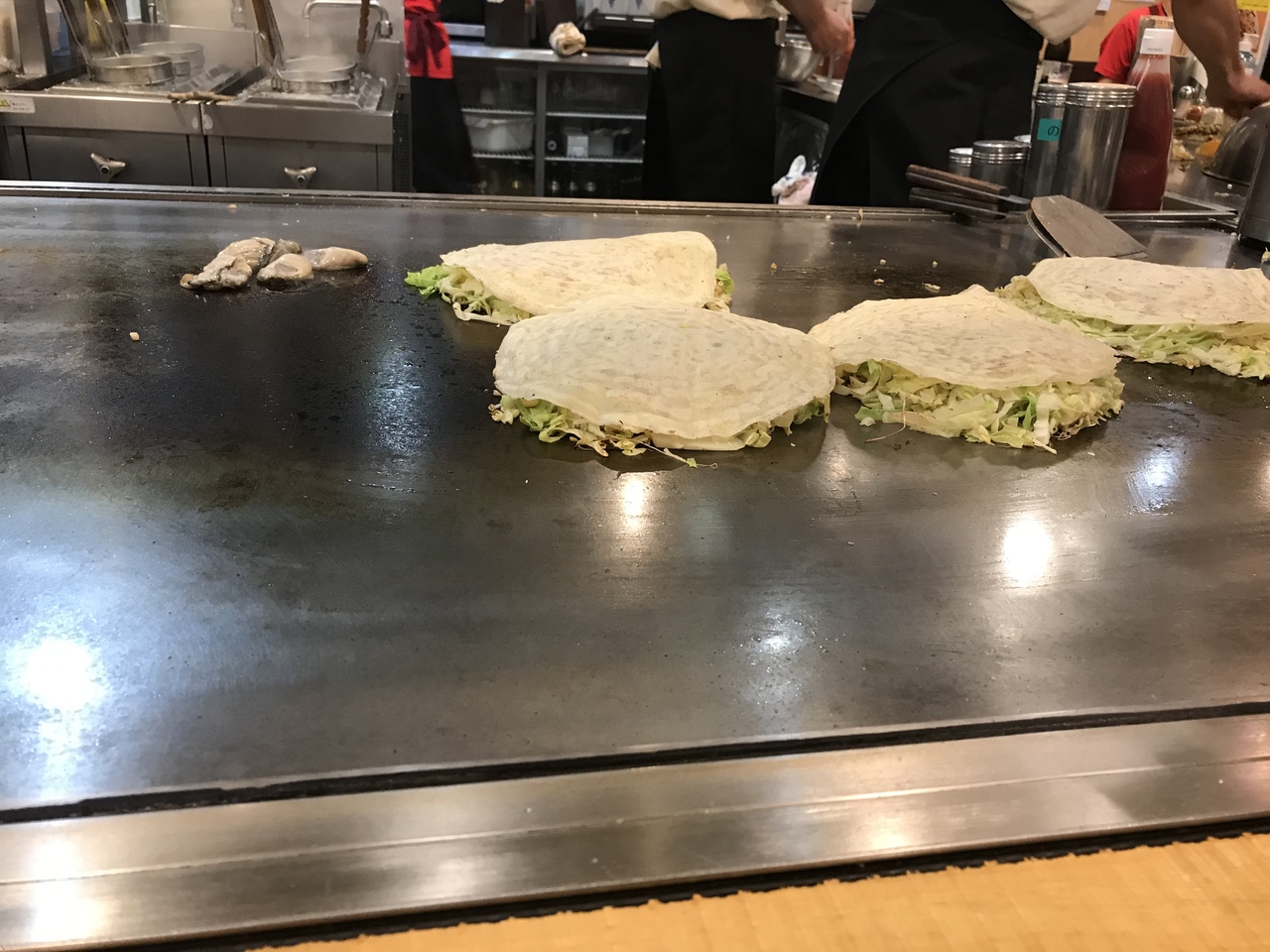 宮島対岸の地御前産の生かきを贅沢に使用しているとのこと。そのせいなのか、牡蠣はしっかりしており、ボリュームがある。口に入れるとらちゃんと牡蠣の味が主張するが、お好み焼きの味は邪魔して無い。冬に広島に行った際は食べたい一品。