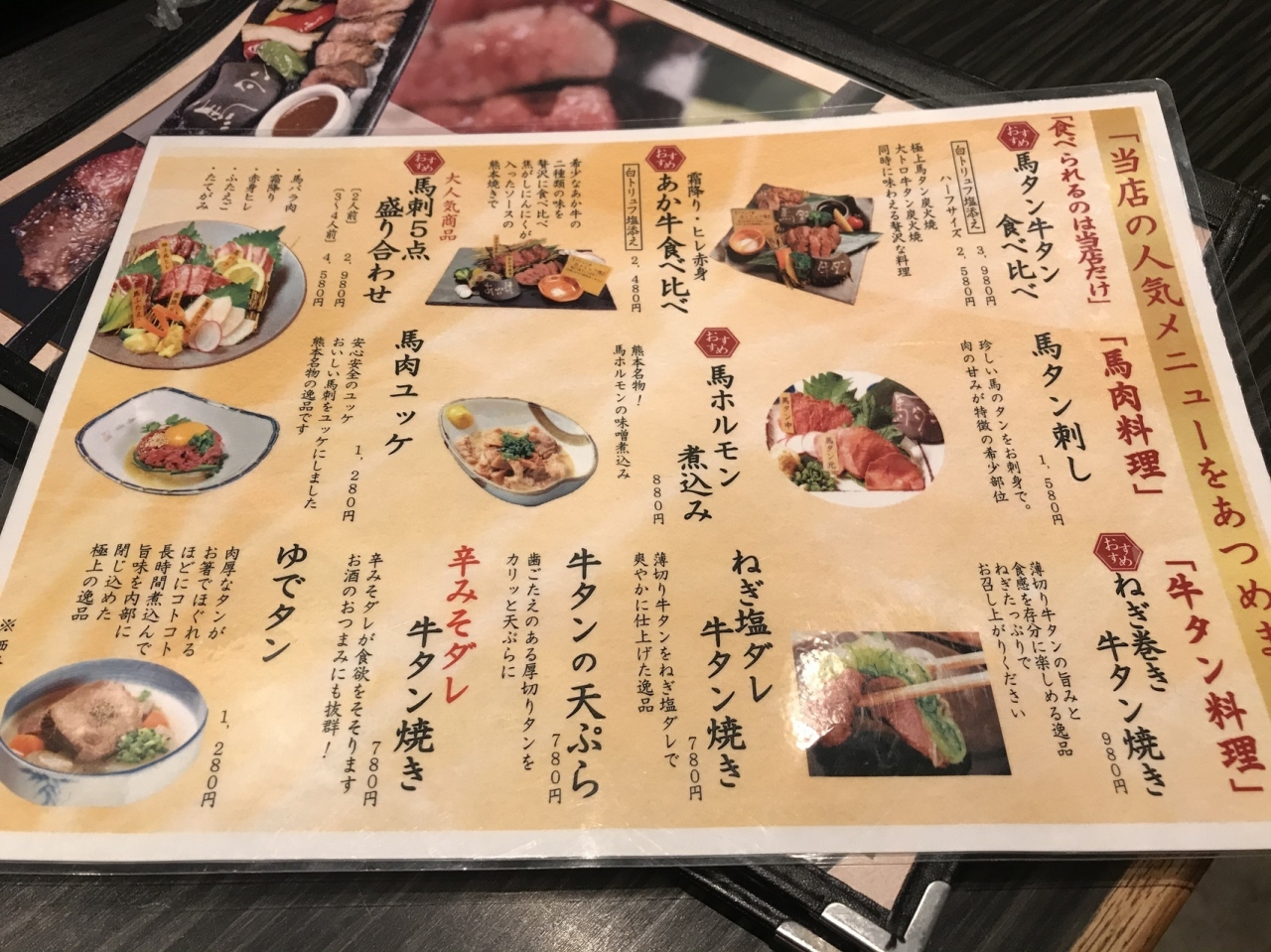 牛肉は阿蘇あか牛がメインのため、多少高めだが、馬肉を味わうには最高!