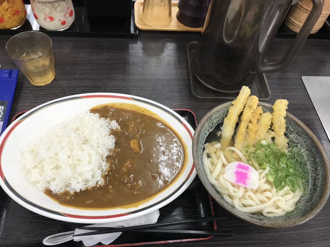 メニューに迷ってしまうのだが、ごぼ天うどんとカレーを注文。この店のカレーは美味しい。テーブルにあるつぼ漬を福神漬がわりに添えるのも良い。