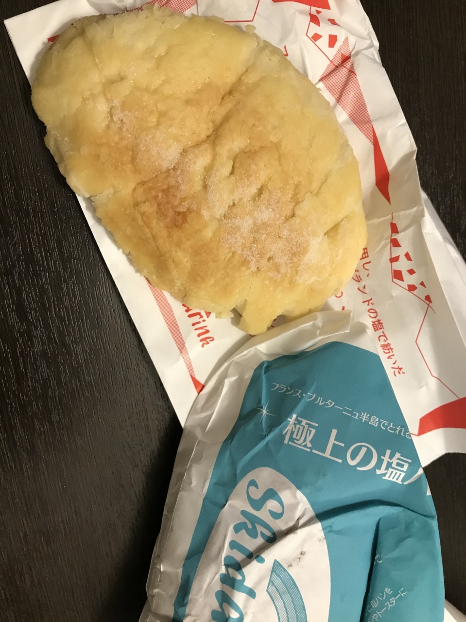 少し落ち着いたところで、塩パンをいただく。口に入れると、まずはカリッとした食感があり、その後にジュワーッとした生地の味が追ってくる感じ。塩パンなので塩気は効いているが、決してしょっぱ過ぎない。むしろ少し甘い感じ。塩メロンパンもいただいたが、同じ感じ。もっと買って帰ればと反省。
