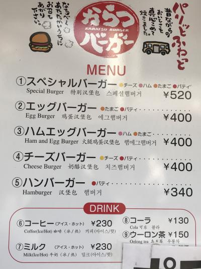 唐津のご当地バーガー、虹の松原での販売がメインだが、唐津中心部大手口にも店舗がある。ただし、この店は現在土日祝のみの営業とのこと。また駐車場、イートインスペースは無いので買ってどこかで食べるイメージかな。