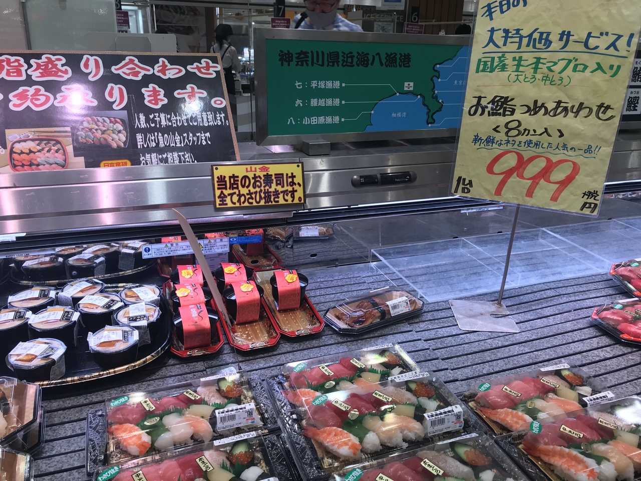 元々は千葉県富津市の鮮魚店らしいが、神奈川県近海八大漁港(小田原、平塚、腰越、佐島など)から直送されたものが多く並んでおり、腰越や茅ヶ崎で獲れた生しらす、しらす干しや生しらす丼も販売しており、ちょっとした湘南土産になる。- 旅行時期