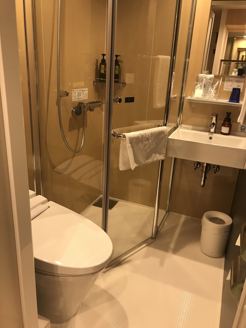 2階に大浴場があるので、部屋にはシャワールームのみ。タオルを入れる袋があるので、基本的には大浴場利用がおすすめ。