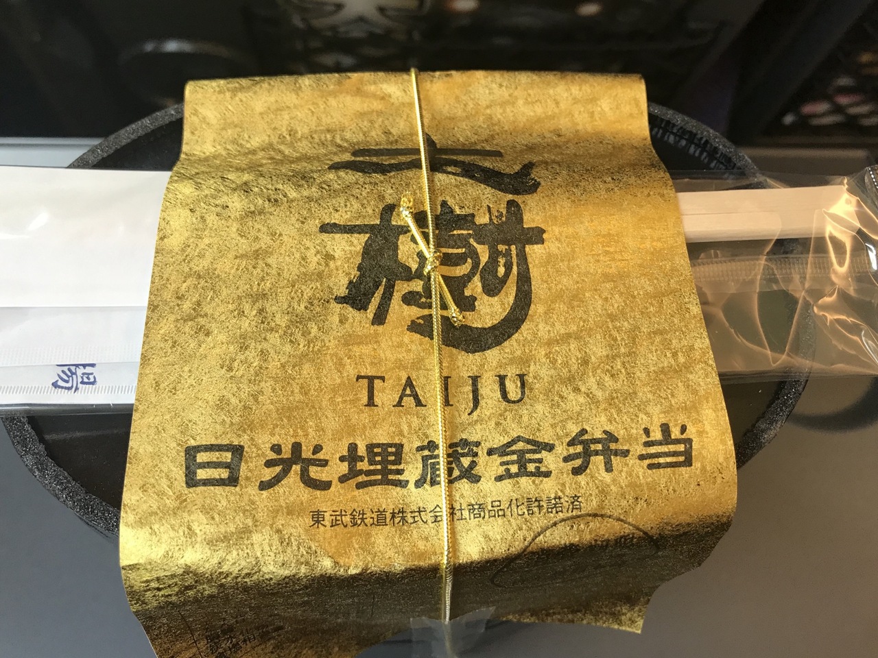 せっかくなので、SL大樹 日光埋蔵金弁当を購入。有名になった1折税込16万2000円の「日光埋蔵金弁当」の弁当箱が異なるバージョン(容器は日光彫りではないが、丸く食べやすいタイプ)。スコップの形のスプーンが付いていて記念になる。
