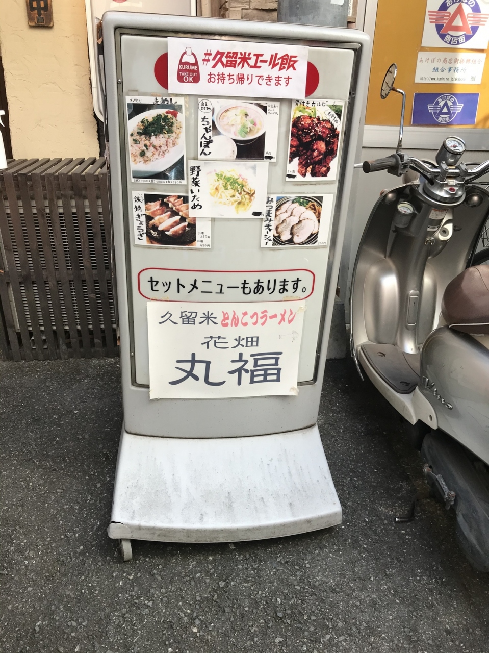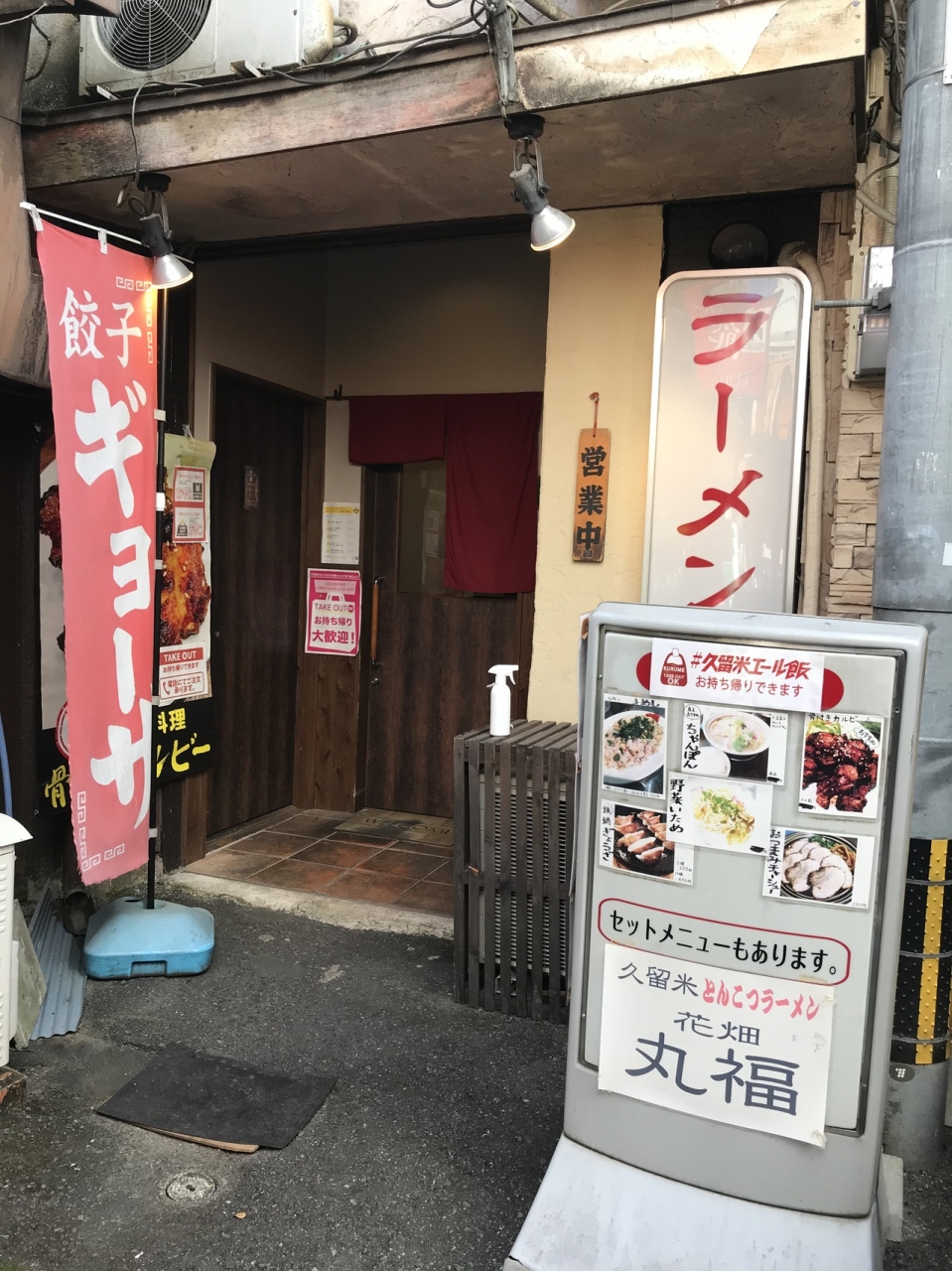 九州道久留米インター近くにあるラーメン店。西鉄久留米駅から今村天主堂行のバスに乗車、15分ほど乗り、地場産業センター前で下車すぐにある(バスは1時間に1本、片道運行なので、帰りは一つ先または2つ手前のバス停に行く必要がある)。