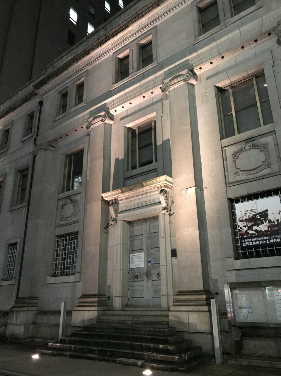被爆建物の一つだが、日本銀行の支店だったせいなのか、爆心地から近いにも関わらず、被災に耐えている感じであり、内部にある手Jン時には実際被災した2日後に営業再開したとの記述がある。