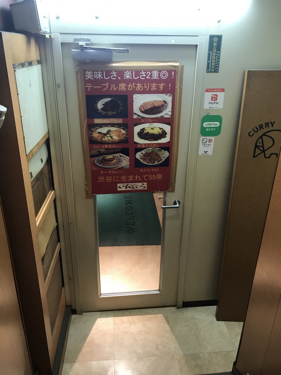 渋谷道玄坂THE PRIMEの先のビルの地下にある老舗カレー店。岡山B級グルメで有名なえびめしの元祖の店(ここの店から暖簾分けして岡山に伝わったらしい)。以前は有楽町にも店があったが、今は渋谷のみ。