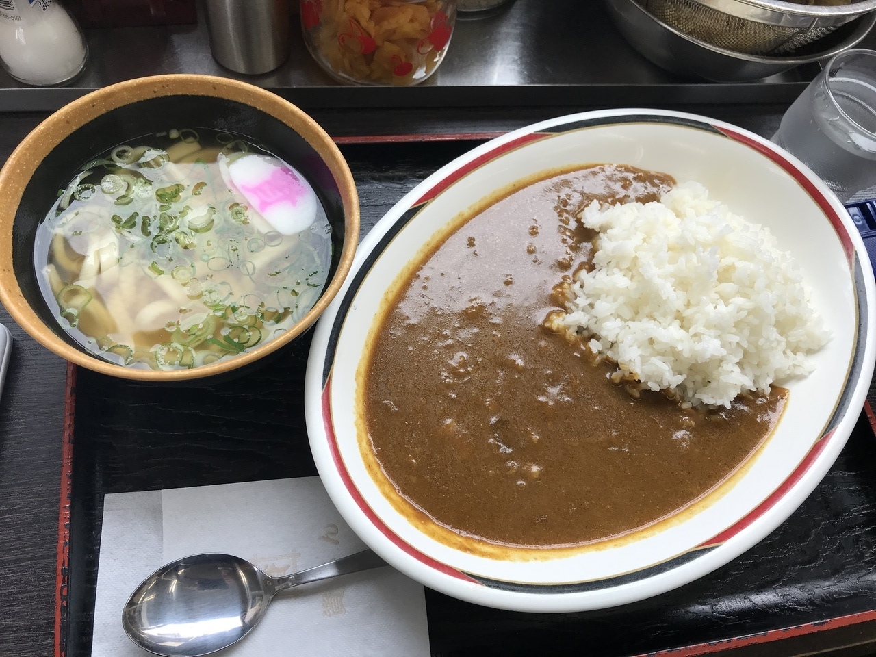 カレーはうどん・そば店とは思えない味。具がうまく溶け込んでいるのだが、ある程度形も残っている。家庭的なカレーだが、なかなか作れない感じかも。カレーのお皿が懐かしい感じなのもよい。- 旅行時期