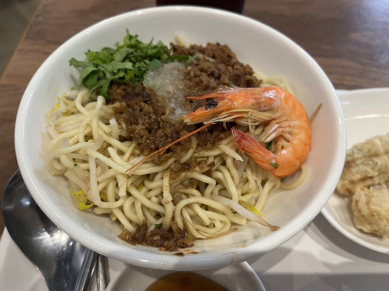 担仔麺は汁なしを注文。スープが無い分具と麺の味がはっきりし美味しい。