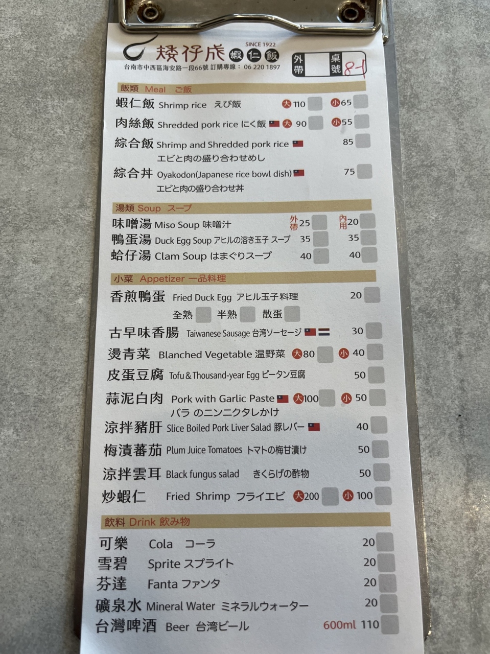 台南の安平老街近くの本店はいつも混雑しているが、この店や高雄大遠百の店はセルフサービスのせいなのかそれほど混雑していない。当然だが味は同じである。