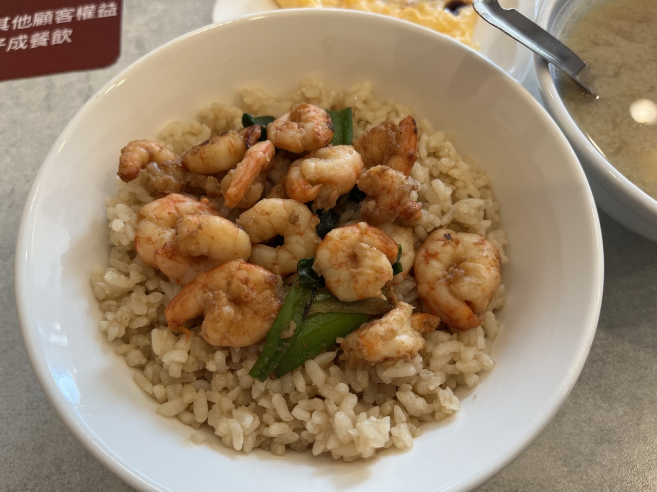 蝦仁飯はしっとり感が或る。味はあっさり。ネギ、醤油の味が引き立っている感じ。香煎鴨蛋と一緒に食べると最後まで美味しくいただける。なお、味噌汁は日本のものよりも甘め。違和感は少ないが。- 旅行時期