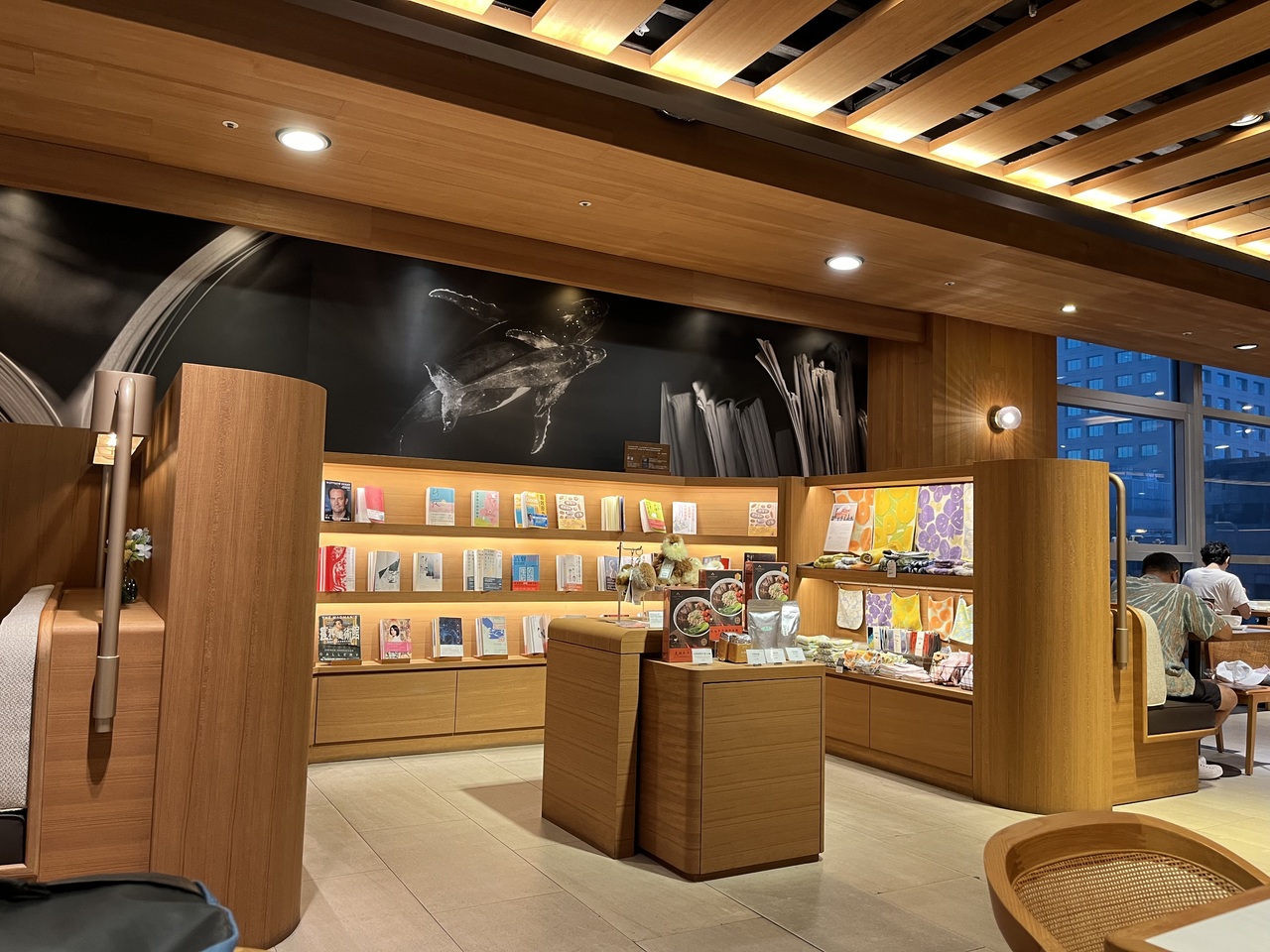 書店は3階ワンフロア、新店や南京西路の店に比べると小規模だが、品揃えは悪くない(ただし雑誌類はイマイチ)。なお3階には誠品生活直営のカフェがあって上級会員はお茶メニューを無料でいただける(会員証定時とスマホのクーポンが必要)- 旅行時期