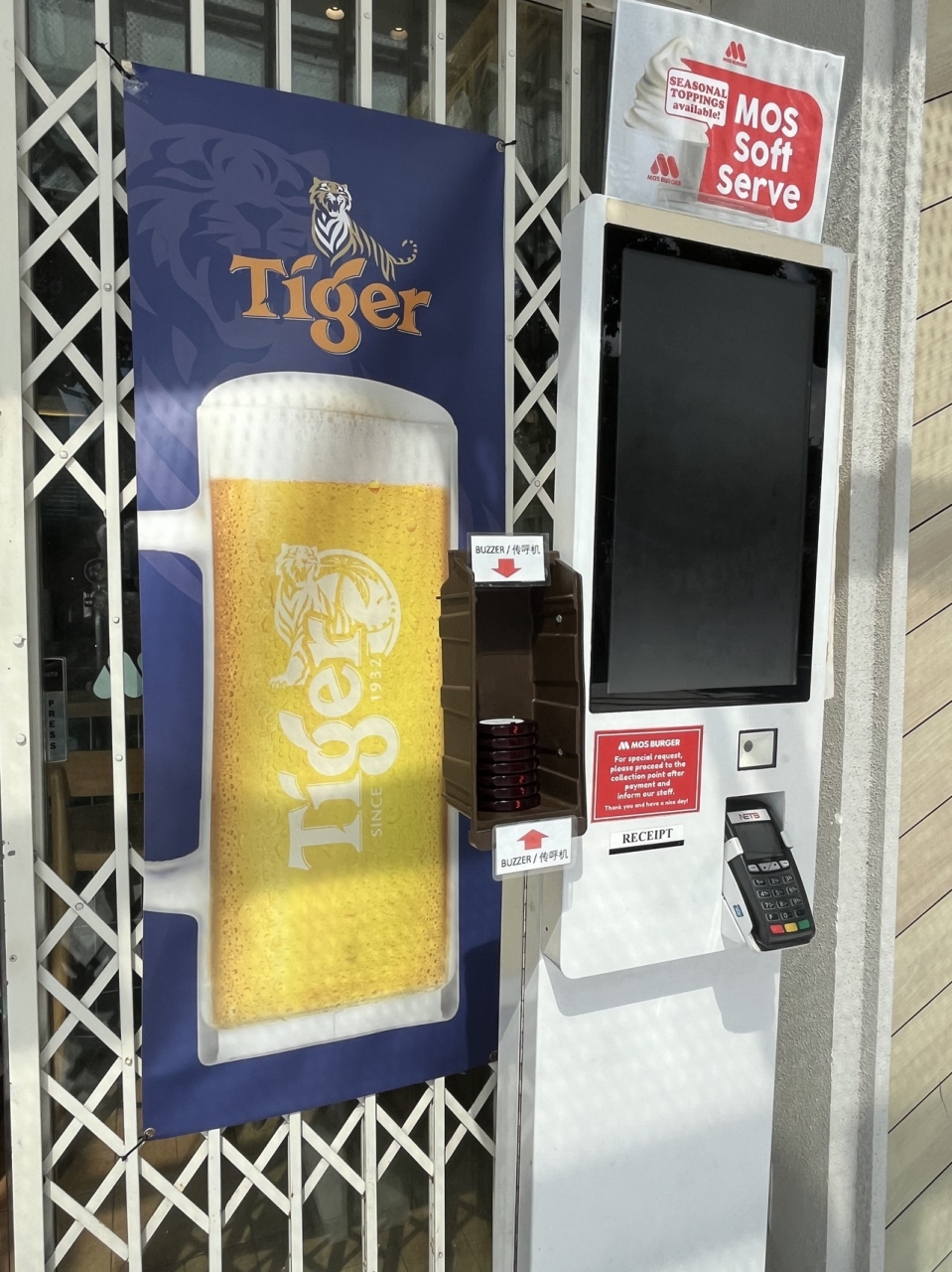 店構えは日本のモスバーガーと同じ。店内も日本のモスバーガーとあまり変わらない。ただし価格は円安のせいなのか日本よりも少し高め。タイガービールが飲めるのがシンガポールらしい。