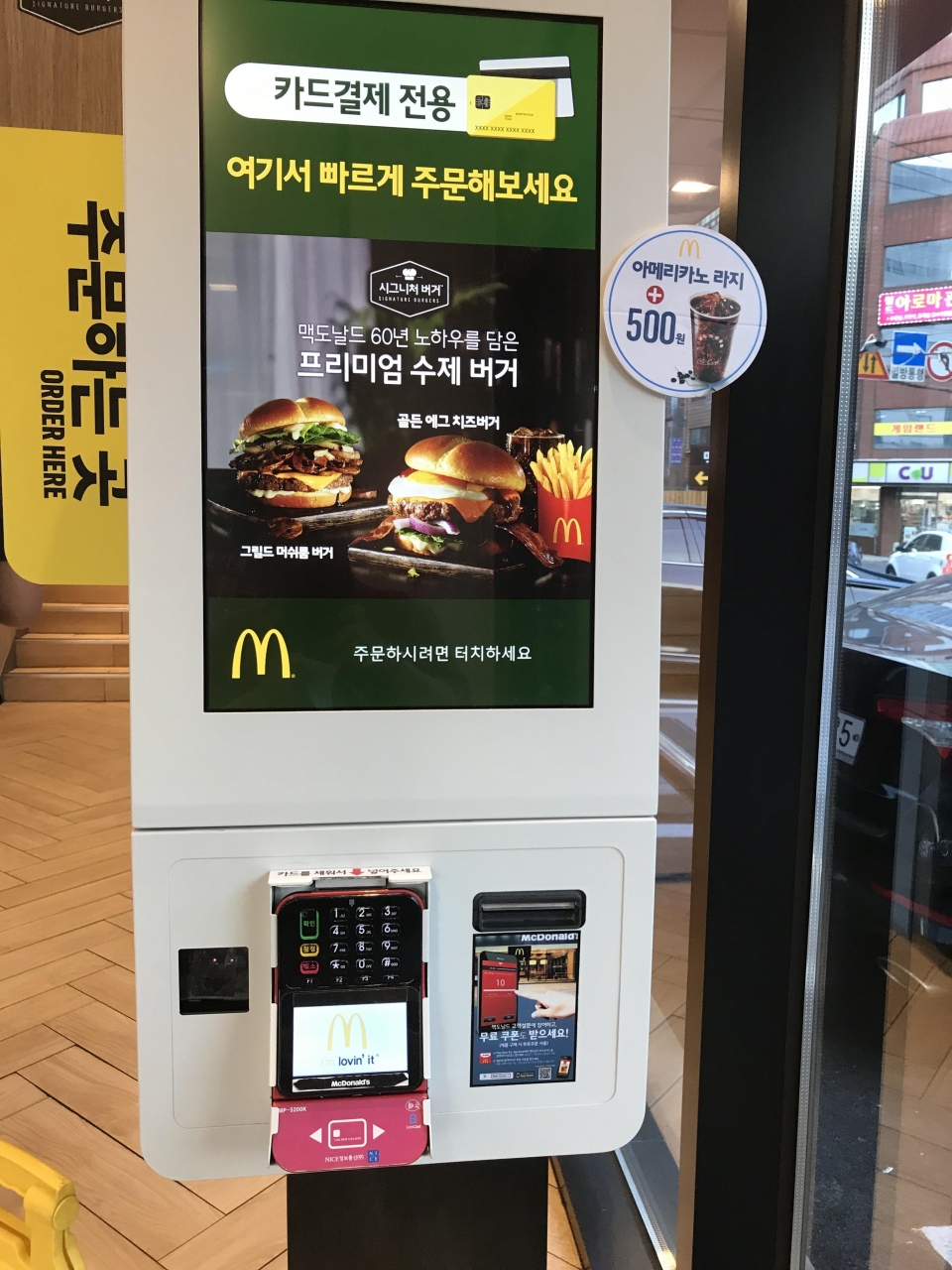 注文は原則としてオーダー機にて。タッチパネルで注文、精算はicチップ入りのカードなら差し込むだけなので、韓国語が話せない観光客にも便利。