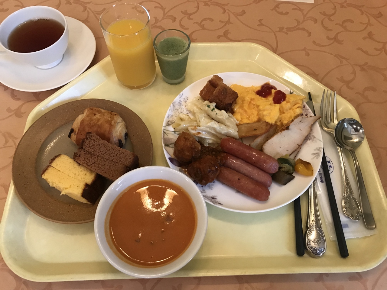 朝食がバイキング形式(宿泊時は)。皿うどん、カステラ等長崎名物が色々。カレーも美味しかった。