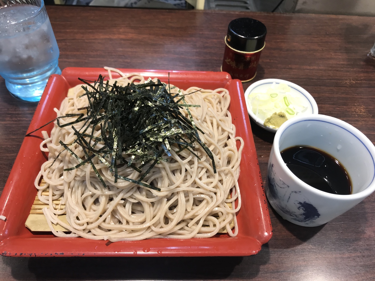 蕎麦屋さんでは珍しい豚肉の天ぷら(肉天)も美味いのだが、今回はもりそばを注文。蕎麦つゆは昔ながらのからいもののみ。つゆに浸す時は半分程度にしないと辛いので注意(普通の店では甘いつゆとからいつゆの両方付いているが、ここはスタンドなので)。蕎麦自体は老舗の味そのまま。立ち食い蕎麦としては価格が少々高めだが、満足。残ったつゆは蕎麦湯で割って、蕎麦の栄養を吸収して完食。