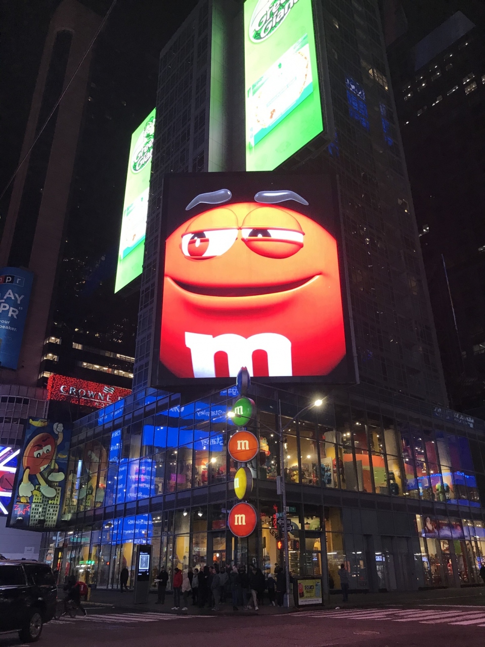 店舗は3階建て。ビルの3階部分にある大きなモニターには"スポークスキャンディ"(M&Mのキャラクター)が映し出されていて楽しい。