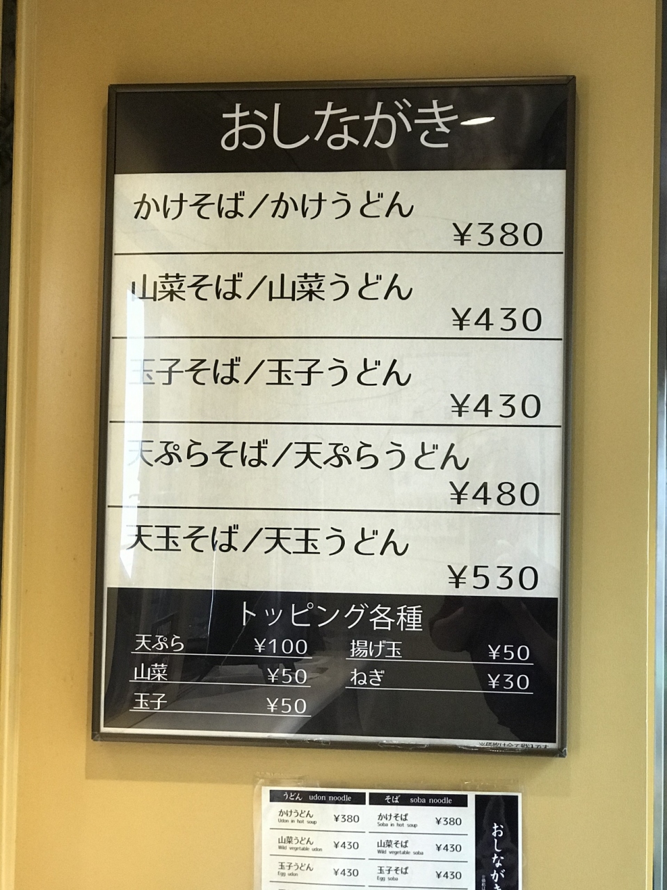 天ぷらそばを注文。かき揚げは他の駅そばと変わらない感じだが、そばはコシがあろ、駅そばでは味わえない、蕎麦の微妙なざらざら感覚のようなものがある。まただしは鰹の香りななんとなくする。かけそば380円は少々高めだが、軽井沢駅は駅そば発祥の地(色々な説はあるとは思うが)だそうで、なんとなく納得した感じ。