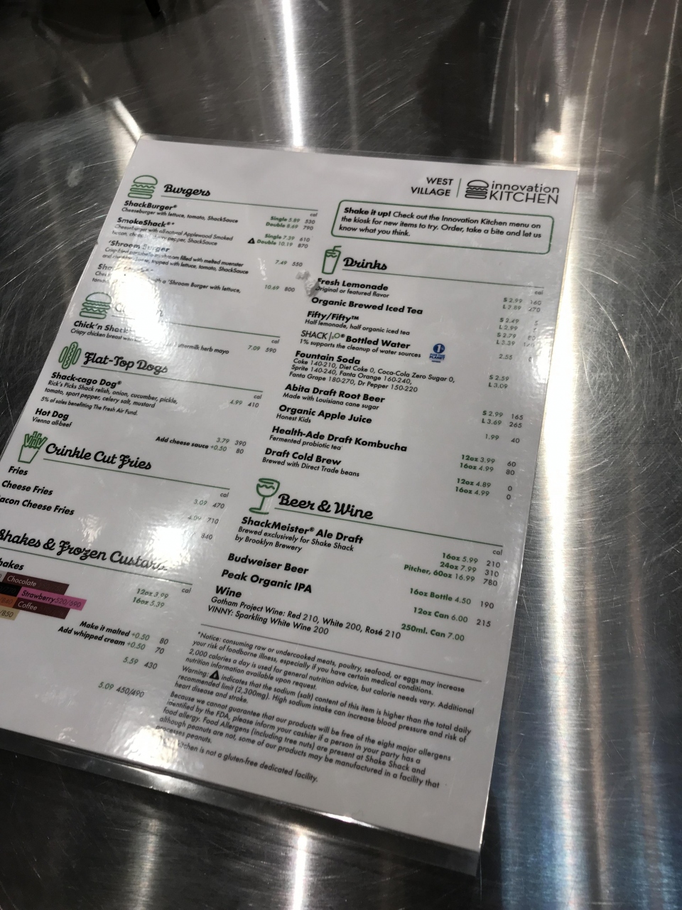 訪問時は残念ながら目新しいInnovationメニューが無かったため、ノーマルなシャックバーガーとFIfty/Fiftyを注文。ちなみにFIfty/Fiftyはアイスティーとレモネードをミックスしたもの。